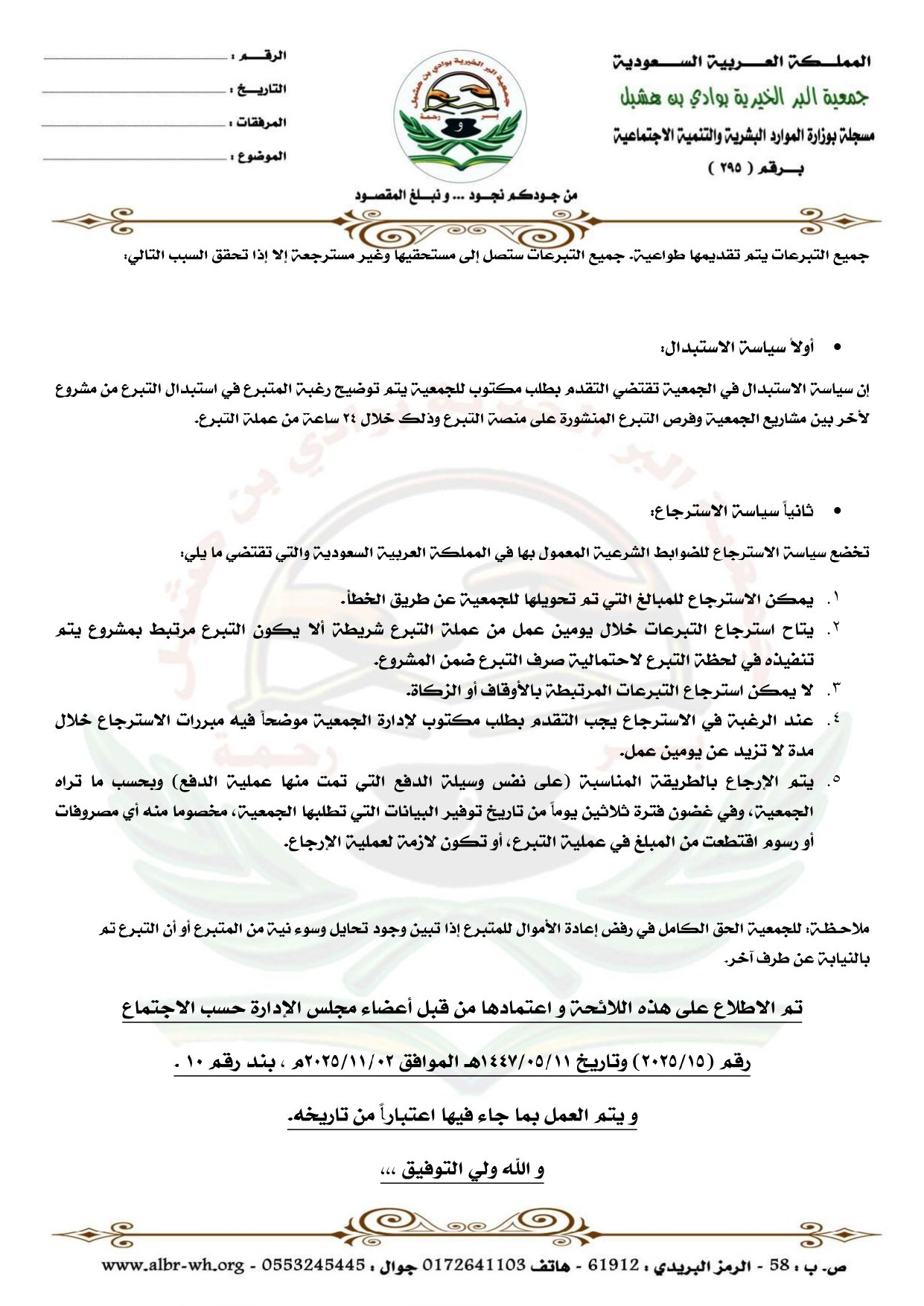 سياسة الإستبدال والإرجاع الخاصة بالتبرعات